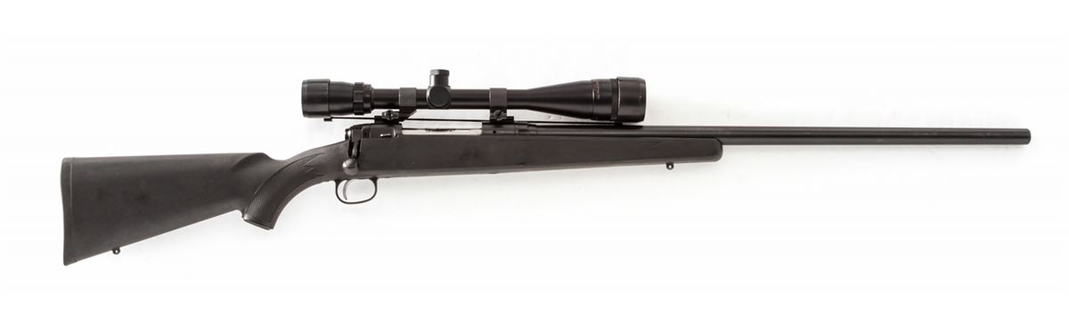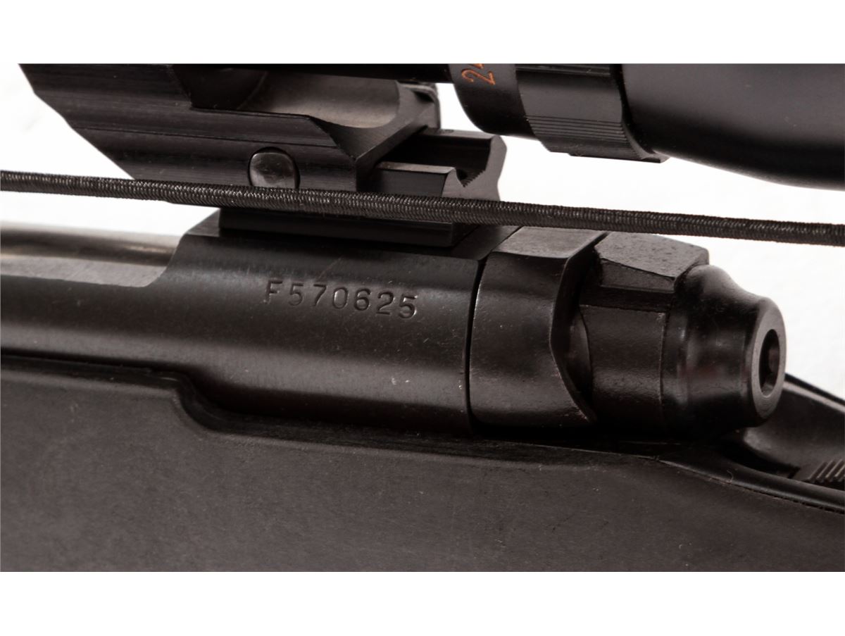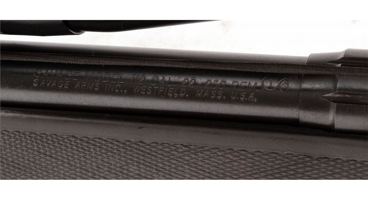 Savage Model 112 Bolt Action Rifle, #F570625, .22-250 cal., 26'' medium-weight barrel, blue finish, synthetic stock, with Bushnell 6-24 scope on Weaver rings and mounts. Condition is excellent showing little use. Scope optics are clear. Est.: $350-$500. (Modern)