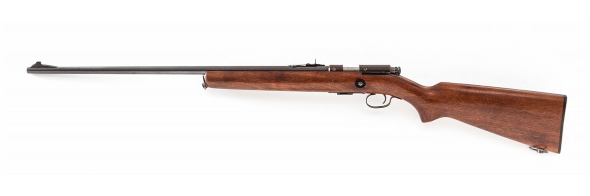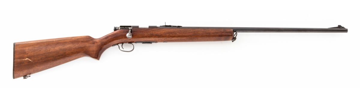 Winchester Model 69 Bolt Action Rifle, NVSN, .22 S,L & LR cal., 25'' barrel, blue finish, walnut stock, with one correct magazine. Condition is very good as modified, with plugged scope mount holes to sides, top of receiver and barrel. Stock with light marks from handling. Crisp action, bright bore. Est.: $125-$250. (C&R)