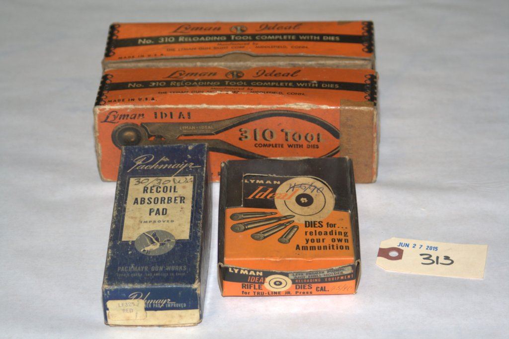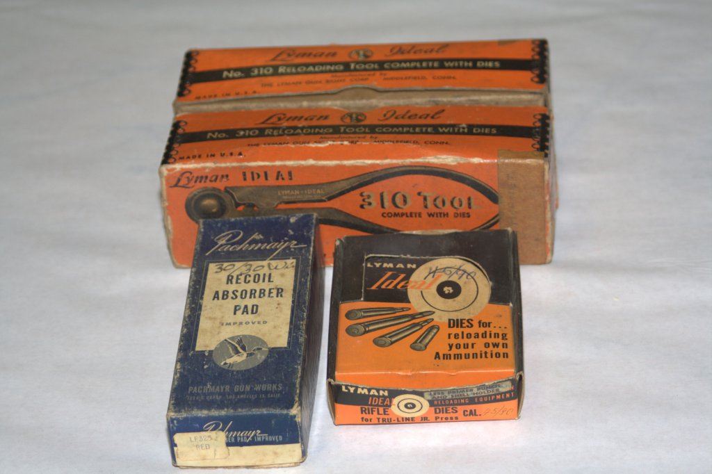 4 Boxes Reloading Dies and Lyman Ideal NO 310 Reloading Tool. Middlefield, Conn.