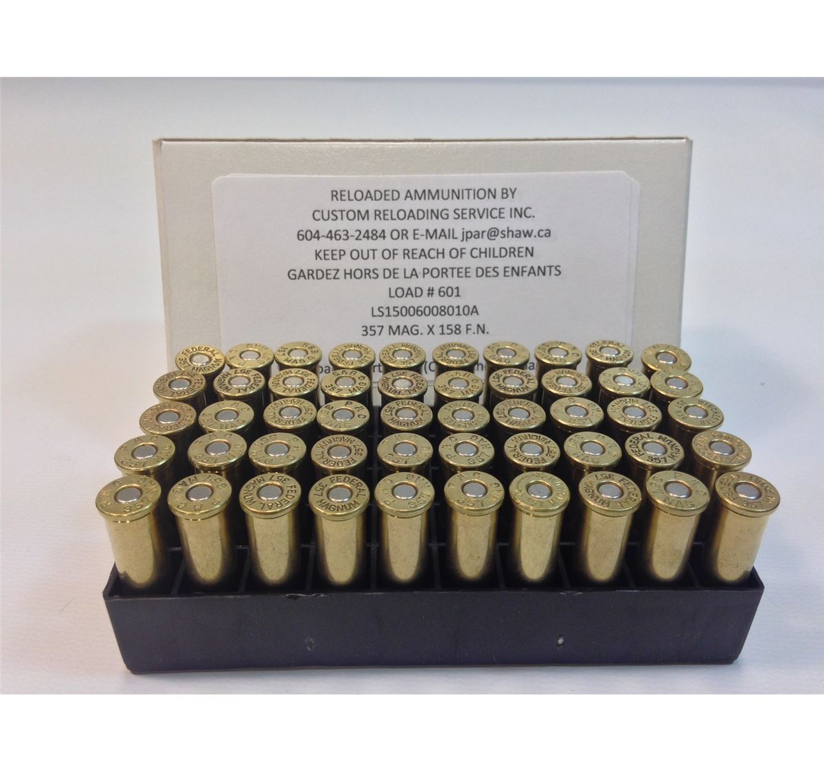 Custom Reloading Service Inc. 357 Magnum re-loaded ammo (50 rounds)