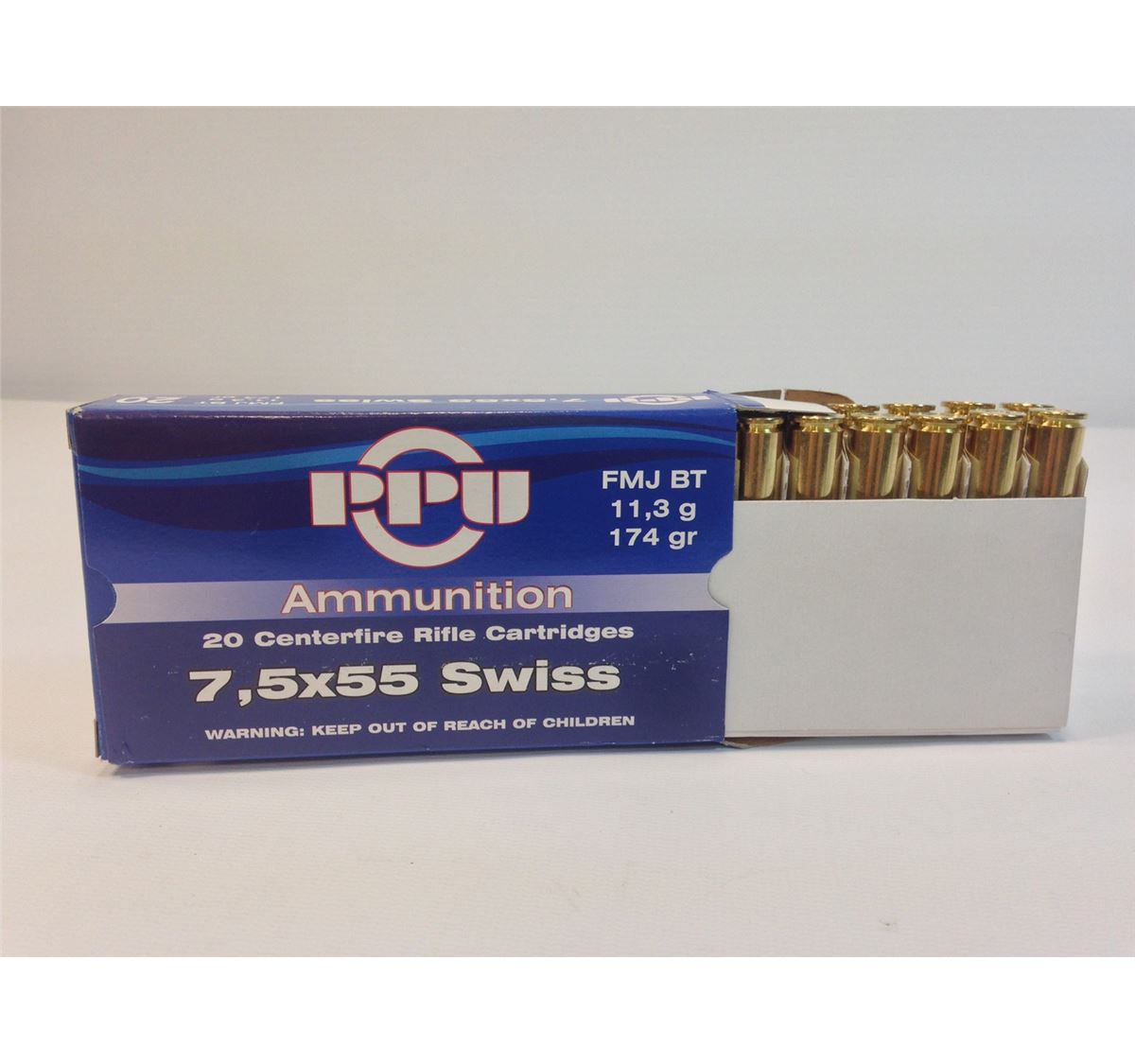 PPU brand 7.5 x 55 Swiss ammunition