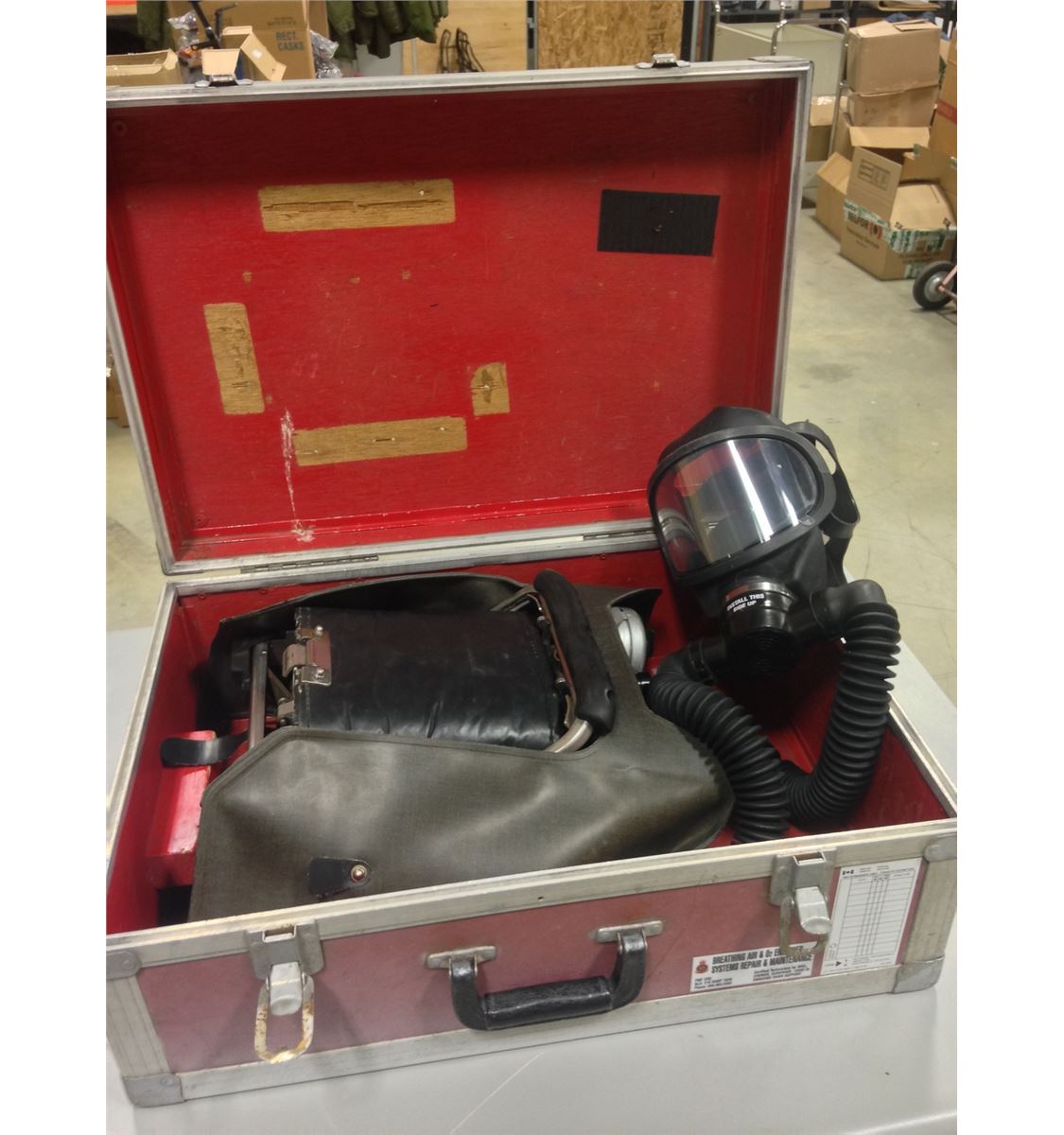 Comes in the original, MSA stamped heavy duty protective red box with hoses, mask, strapping and harness