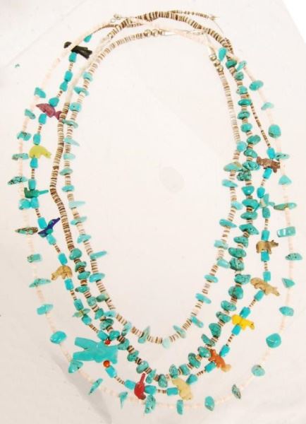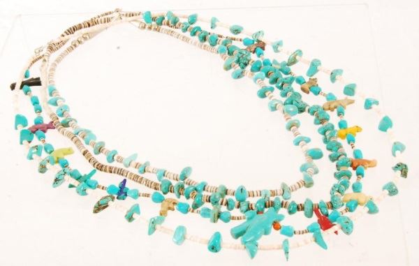 Lot 92 4 Turquoise Indian Fetish Necklaces