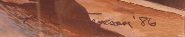 Untitled original painting by Chris Jensen circa 1986. measures 33" wide and 24" tall. Frame measures 46" wide and 35" tall.