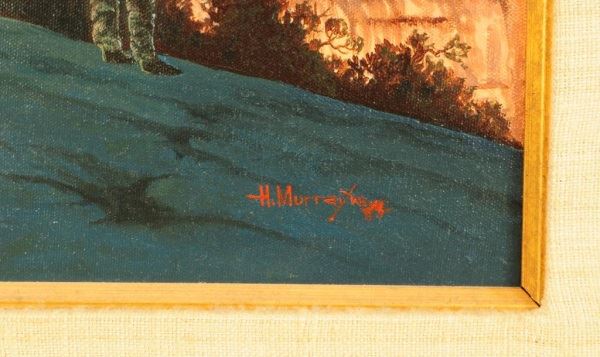 By H. Murray. Canvas measures 17 3/4" wide and 24" tall. Frame measures 28 1/2" wide and 34 1/2" tall.