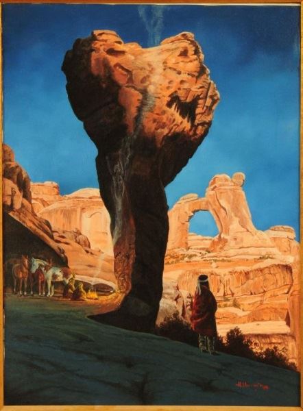 Lot 106 Monument Rock & Indians Oil Painting