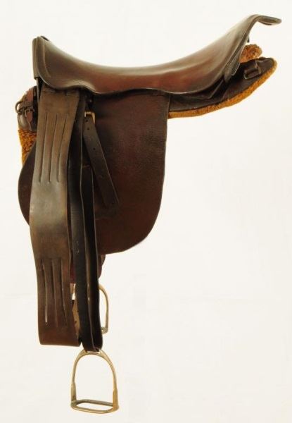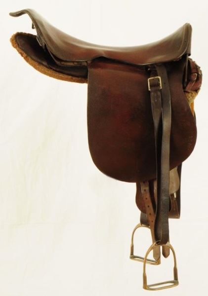 English cavalry saddle WWI. No stirrups but has original cinch.
