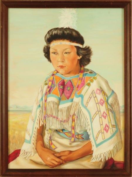 Elizabeth Lochrie (1890-1981). 28" x 22" oil on panel. "Myrtle Racine - Blackfoot." Not signed but titled by artist on back. Ex-museum collection.
