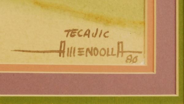 Amendolla (Mexico). 13" x 19" watercolor. "Tecajic". Fine frame. Circa 1970's.