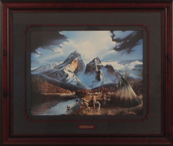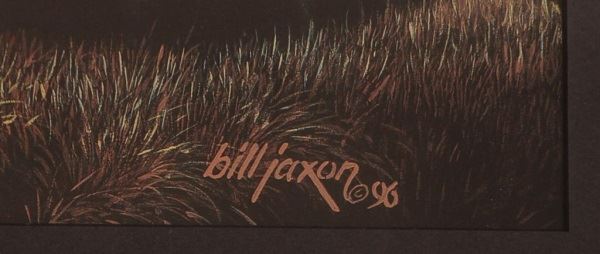 Signed on back of frame "Best wishes to my friend Jim, Bill Jaxon 97). Frame measures 37" wide and 31" tall.