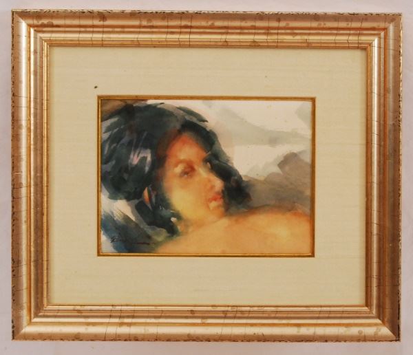 Ramon Kelley. (AWS PSA) 7 1/4" x 5 1/4" watercolor. "Sleeping Model". Listed at $1500 by Ramon. Excellent frame.