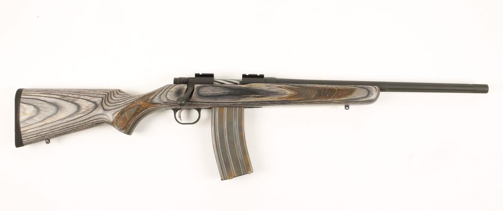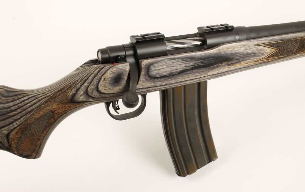 Matte blued steel bolt action rifle with a 18-1/2" fluted barrel, Weaver style scope bases, adjustable LBA trigger, laminated wood stock with recoil pad, spiral fluted bolt, sling swivels and one Brownell's high cap magazine. Metal finish has a few shiny rubs in the finish. Wood has no defects or marks. Action works well. Bore is bright and shiny with sharp rifling. Muzzle has a slight (maybe 11 degree) crown. Condition is excellent. *Modern Firearm*