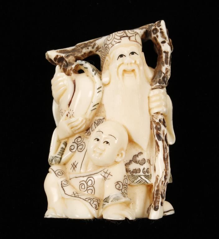 Lot 73 Ivory Netsuke of Bearded Man and Momotaro