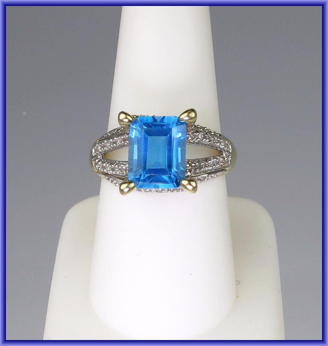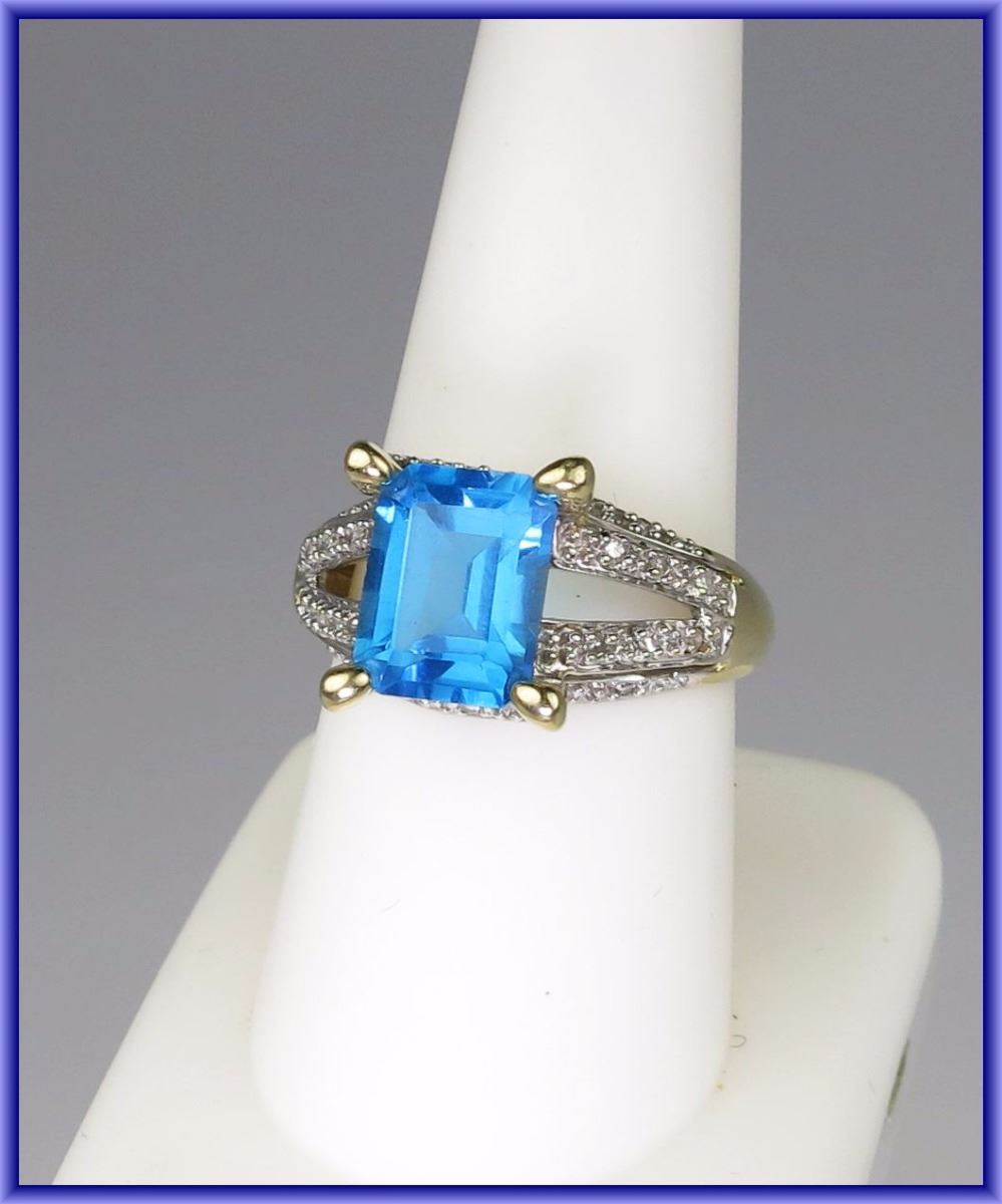 Lot 77 Beautiful Swiss Blue Topaz & Diamond Ring