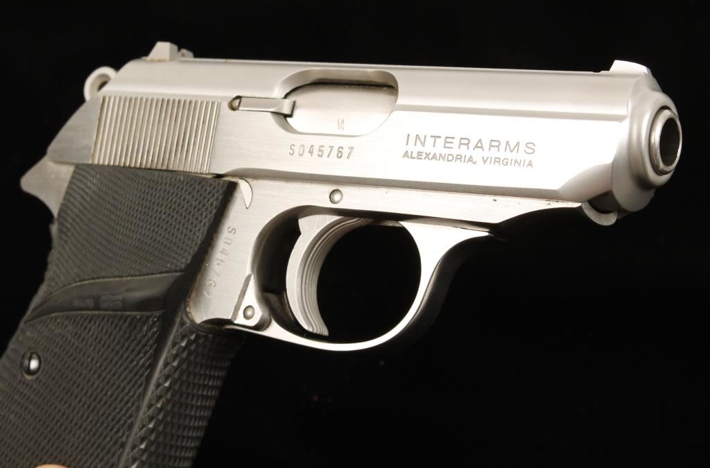 Made in U.S.A. for Interarms. Stainless double-action semi-automatic pistol with a 3-1/4" barrel, Pachmayr Signature grips, two 7-round magazines (one with a finger rest), factory box and cleaning rod. Metal finish of brushed steel and matte is flawless. Grips are pristine. Bore is mirror bright with strong sharp rifling. Decocker safety works well and the double action functions as designed. Condition is excellent. *Modern Firearm*