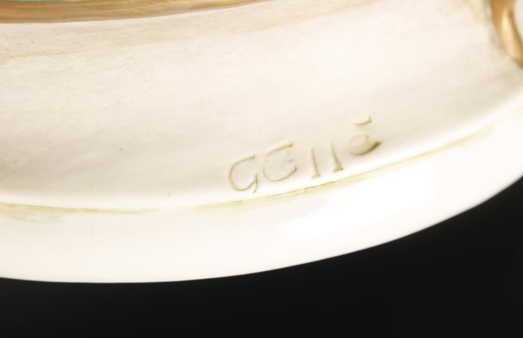 1959 date on base, stamped with logo. Signed Cappe on base depicting 2 gentlemen gossiping on a settee. Measures 7"x6". Original price in the 70s $400. Very good condition.