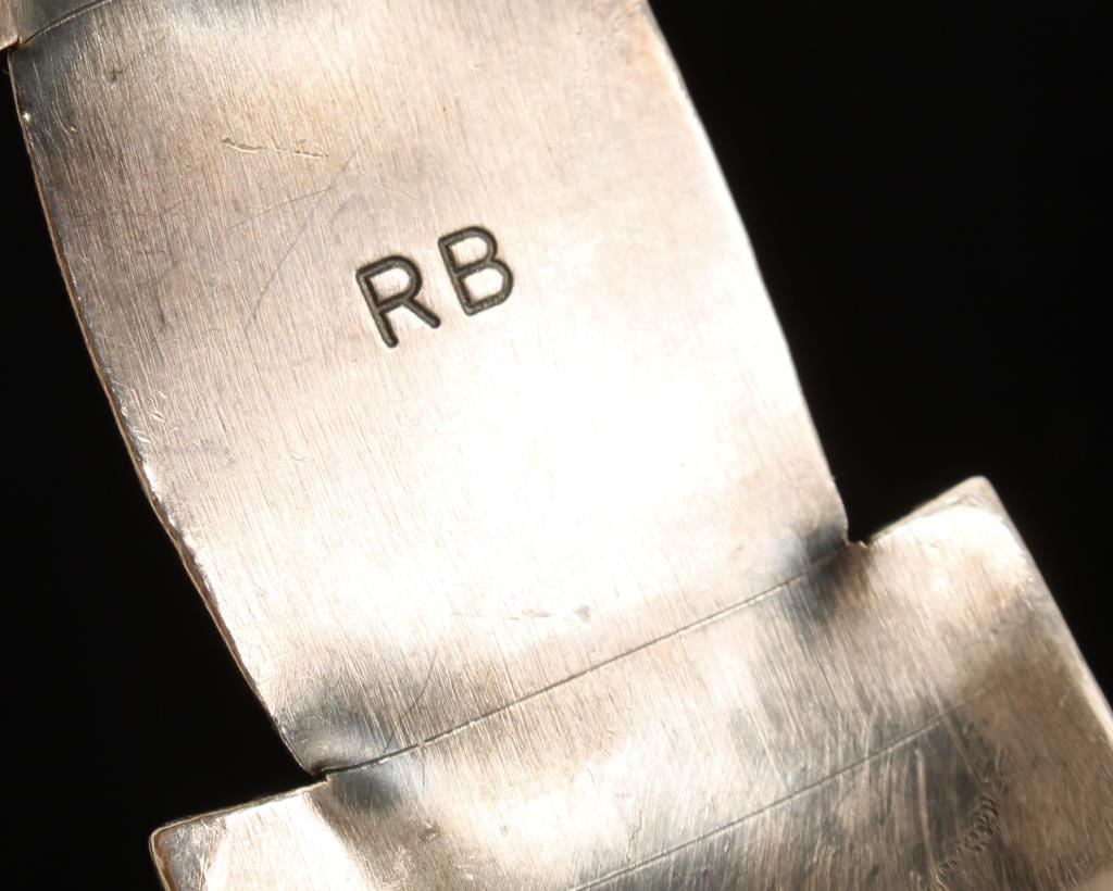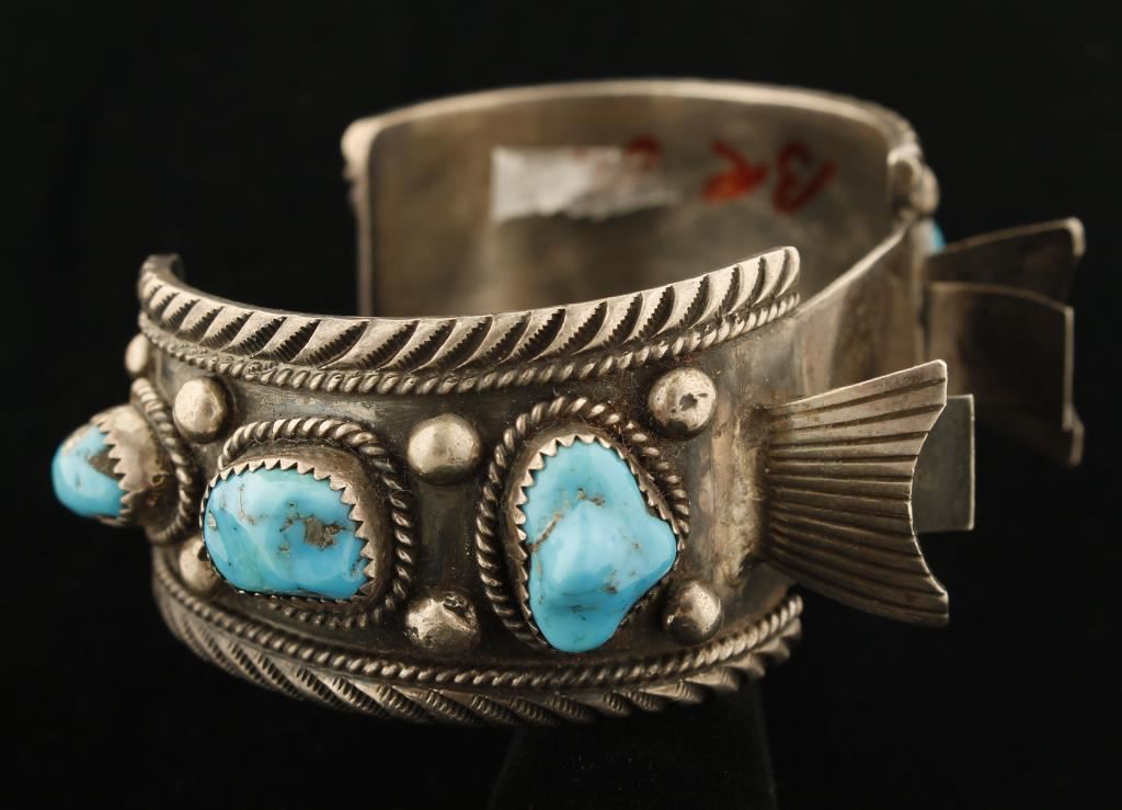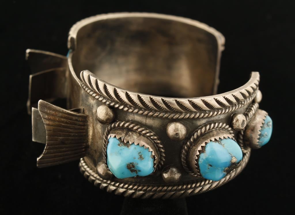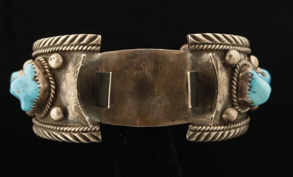 6 nugget turquoise, probably Morenci. Signed "RB" by noted artist Richard Begay. 1970's era. From the Charlie Myers estate noted dealer, collector and friend.