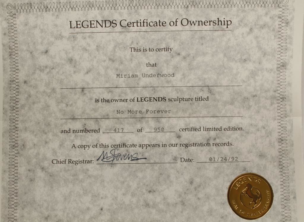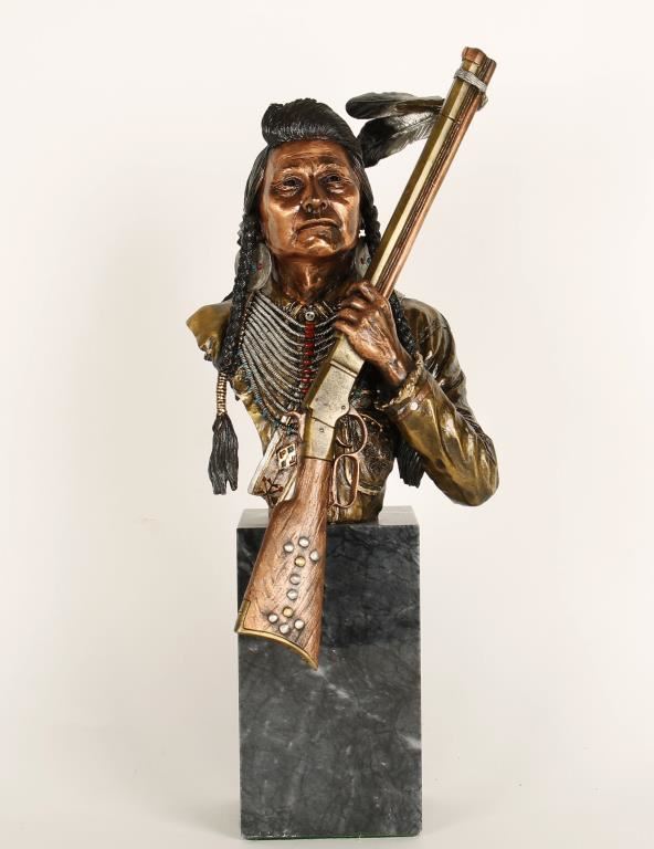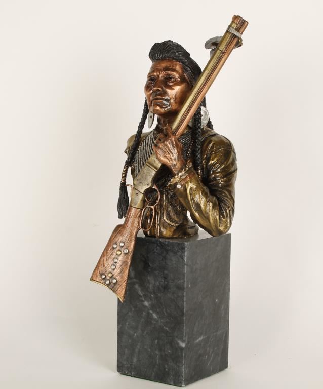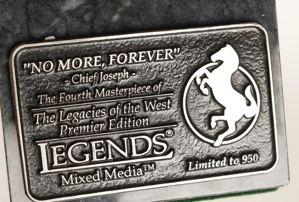 Artist C.A. Pardell entitled "Chief Joesph", mixed media bronze, limited edition 417/950 on marble base. 15"x4"x4". Includes certificate of authenticity from Legends, Simi Valley, CA. Gallery priced at $3200.