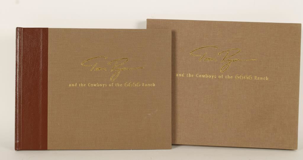 "Tom Ryan and the Cowboys of the 6666 Ranch". Limited edition, signed by the artist and numbered 131 of 250. 8-3/4" by 11-3/4" gilt embossed hard cover. Includes gilt embossed slip case. Condition is excellent.