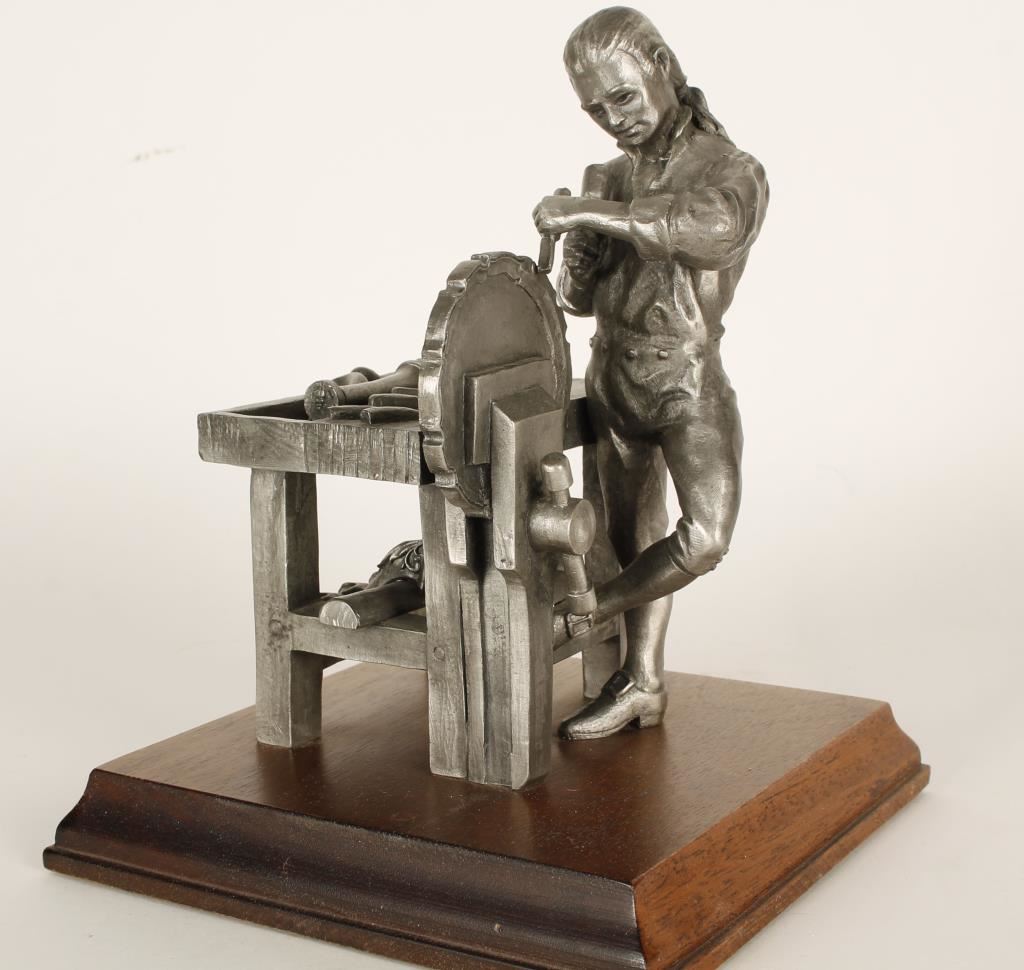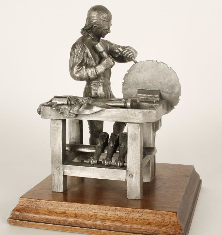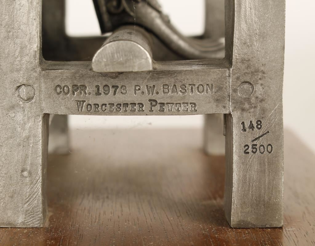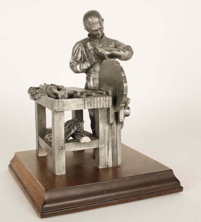 Entitled "The Cabinetmaker" by P.W. Baston. 148/2500 limited edition, stamped, and mounted on oak base. Measures 9"x6"x6".