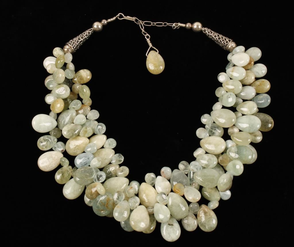 Possibly Aqua marine, teardrop shaped stones, choker style would make a great statement necklace. From the Charlie Myers estate noted dealer, collector and friend.