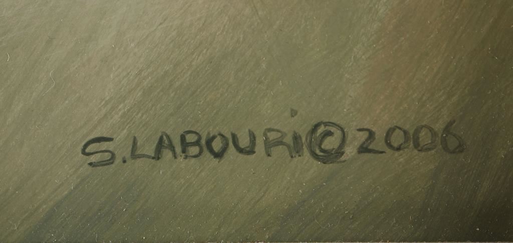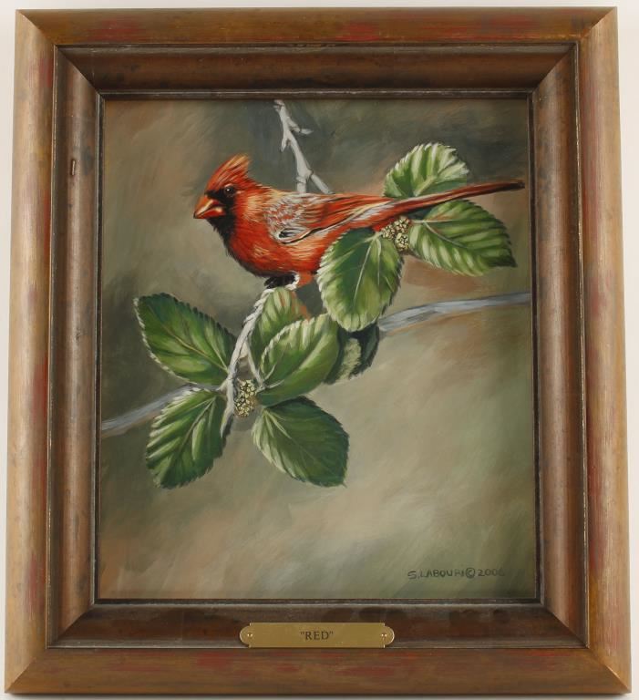 By noted California artist Susan Labouri titled "Red". Signed lower right hand corner dated 2006. Includes original sales receipt for $975 from the Eagles Nest Studios in Big Bear Lake, CA. Measures 10x8-1/2" in wooden frame.