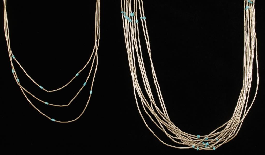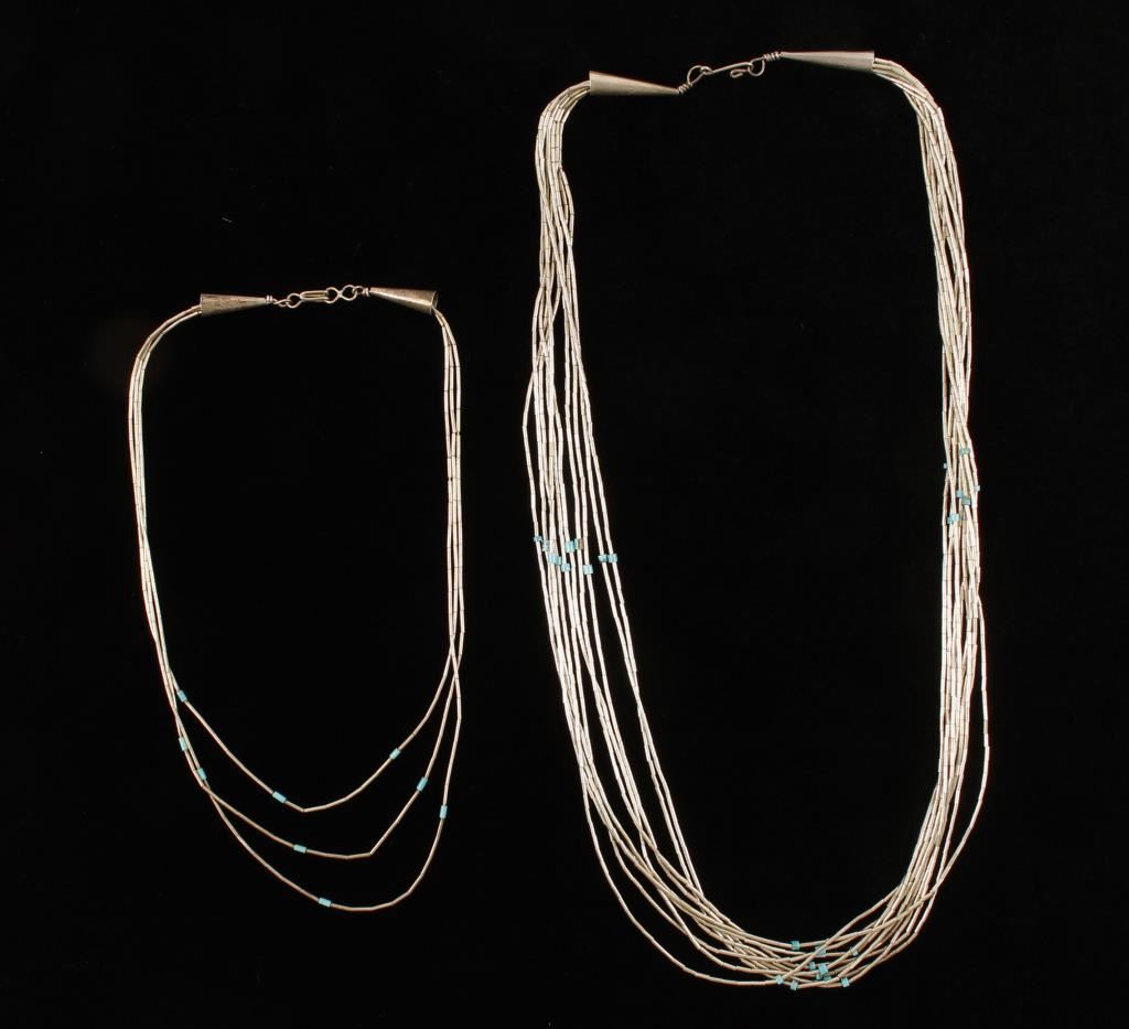 1 Three Strand With Turquoise Beads And 1 Ten Strand Necklace With Turquoise Beads.