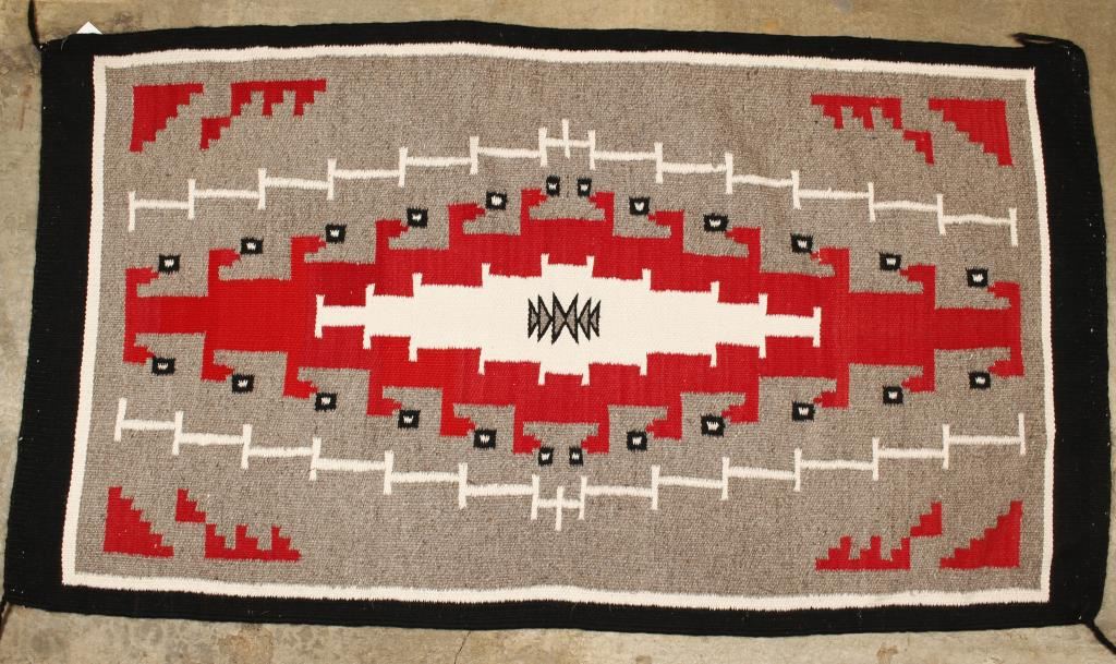 High desert pattern with red, cream and black. Measures 2.8'x4.9'. Good condition.