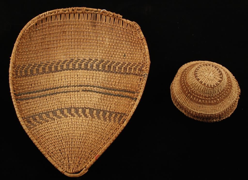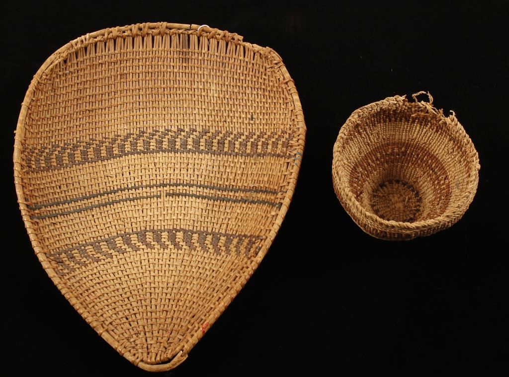 Woven basket and Old West Indian Wheat & Chaff Separator Basket. Scattered losses overall fair condition.