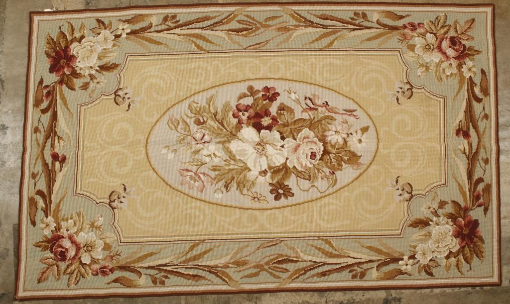 In pastel colors in overall fair condition. Measures 3'x4.11'.