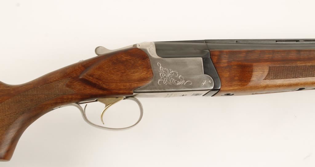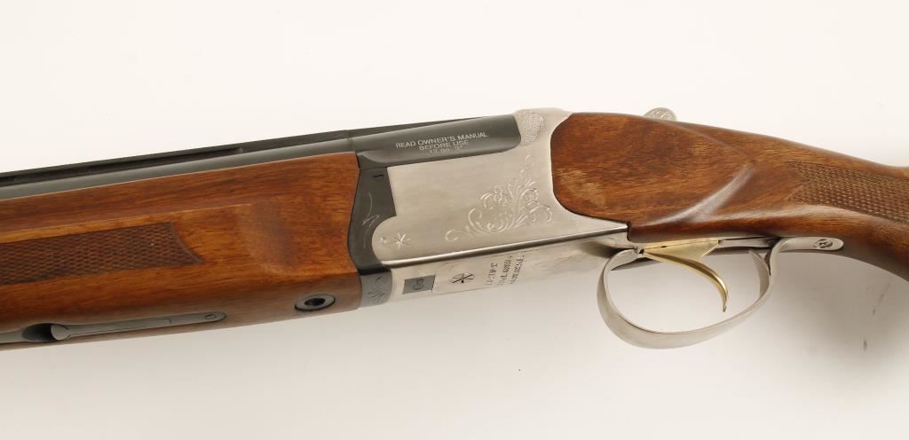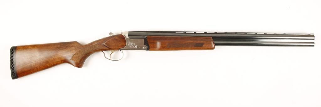 Stainless and blued over-under shotgun with 26-3/8" vent-rib barrels, Full over Modified choke tubes (for Lead), ejectors (selectable), single trigger/barrel selector, automatic safety, checkered beavertail forend, checkered pistol grip butt stock and recoil pad. Metal finish has a few rubs and tiny scratches. Wood furniture is impeccable. Bores are mirror bright. Action is very tight and functions flawlessly. Condition is excellent. *Modern Firearm*