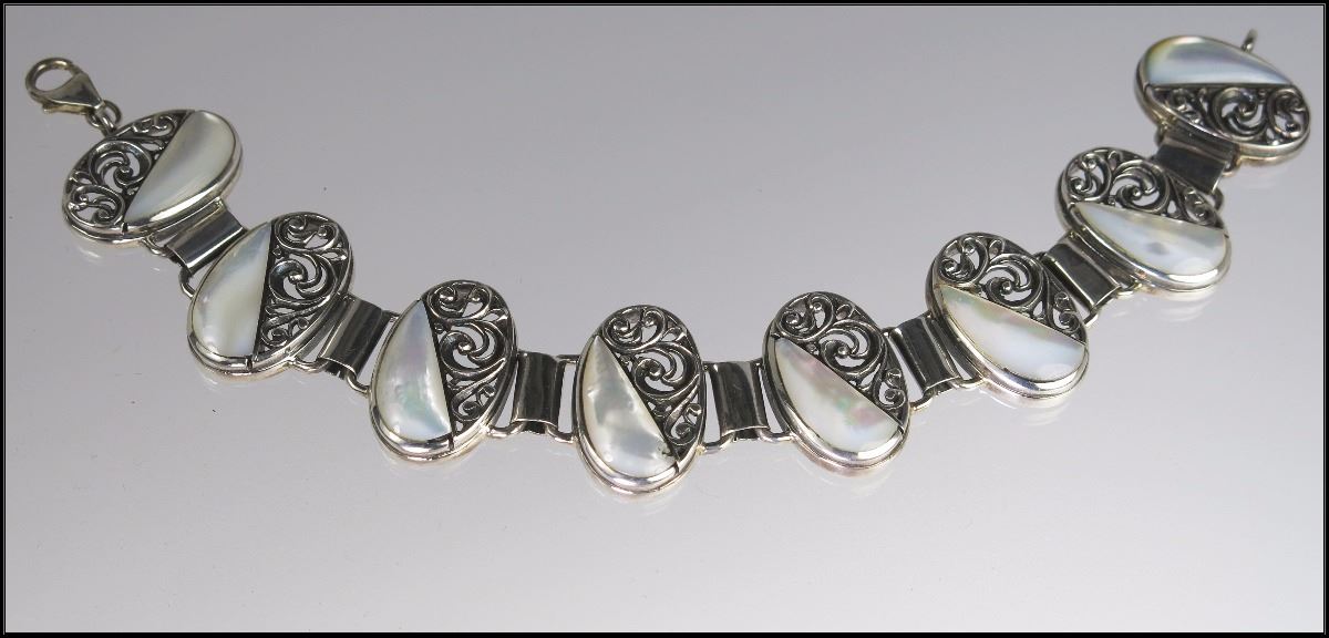 Lot 724 Beautiful Mother of Pearl & Sterling Bracelet