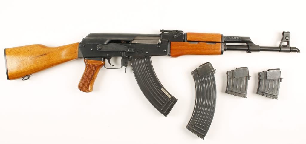 Chinese made semi-auto rifle (copy of an AK-47) with a 17" barrel, muzzle compensator, pistol grip, two 10-round and two 30-round magazines. Heavy gauge stamped receiver. Bluing is very good with rubs and a few small scratches. Wood furniture has many rubs and dings but no cracks or major deficiencies. Bore is mirror bright with sharp rifling. Condition is very good. *Modern Firearm*