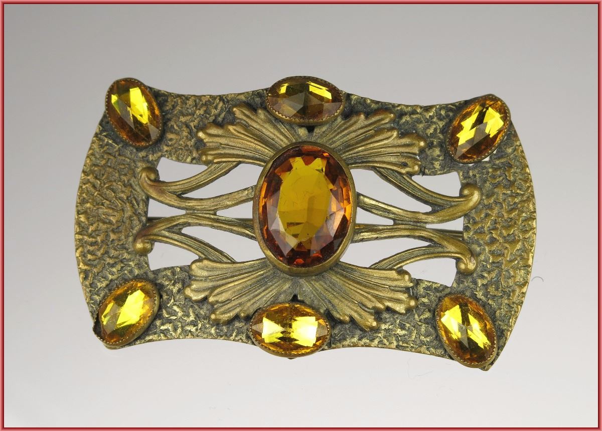 Lovely leaf motif in antique brass set with 7 oval faux citrines.