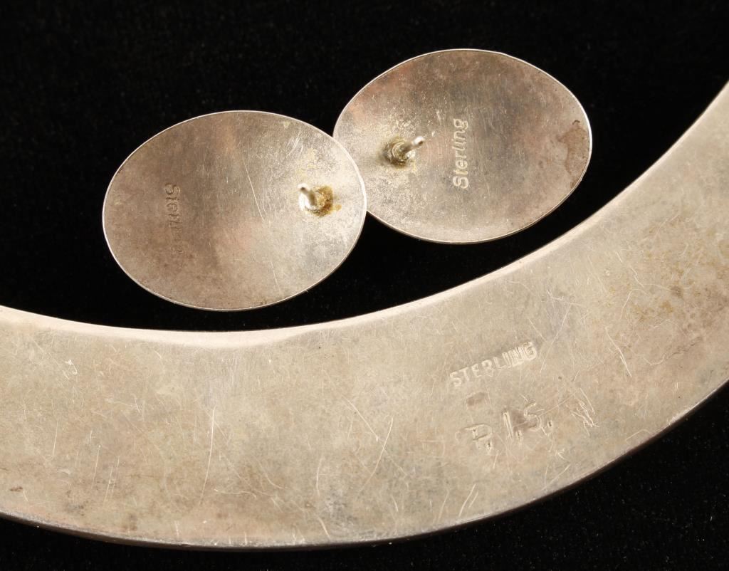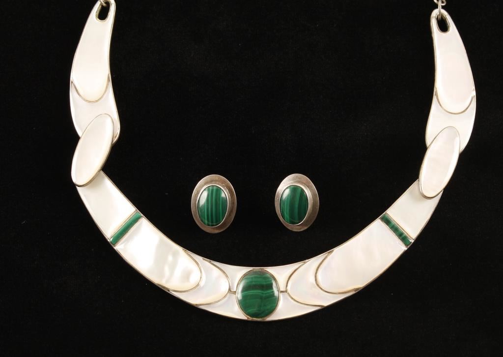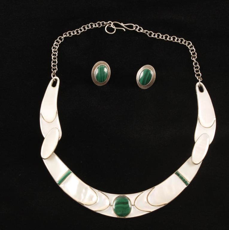 & Malachite set in sterling with matching malachite earrings. Signed P.I.S.