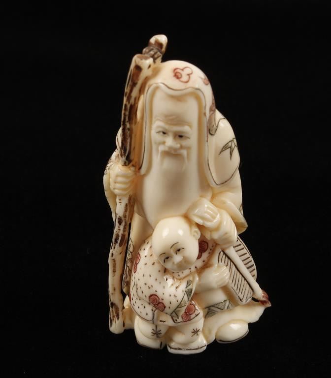 Lot 823 Ivory Netsuke of Japanese God Jurojin