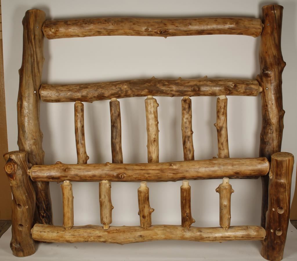King size with massive log headboard and footboard. Custom made-$2500 original price. Overall good condition however the connecting pieces show damage due the weight of the logs, brackets are need to correctly use this bed.