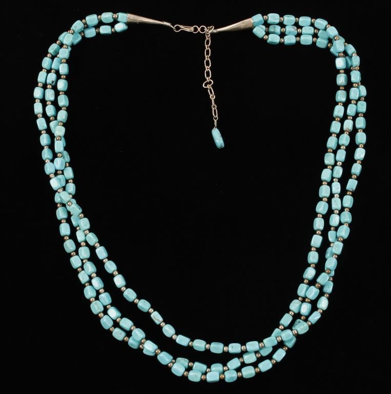 Lot 856 3 Strand Sleeping Beauty Turquoise Necklace