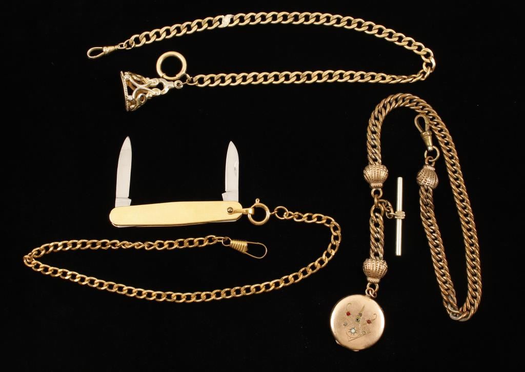 Including 1 with pocket knife, 1 has a locket and is marked 'D&C', and 1 other with monogrammed stamp.