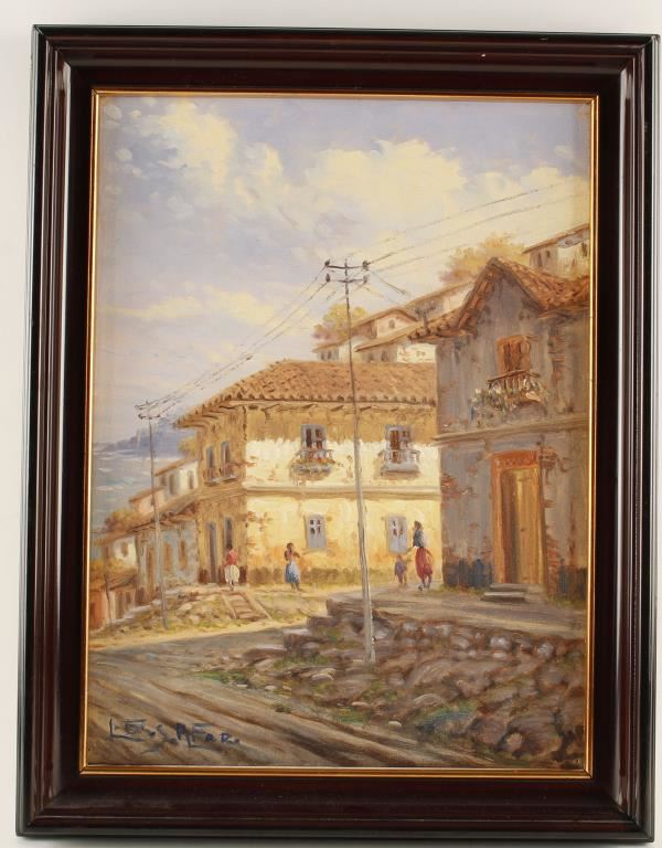 by L.E. Safari depicting Mediterranean street scene. Image size is 11X15, signed lower left hand corner.