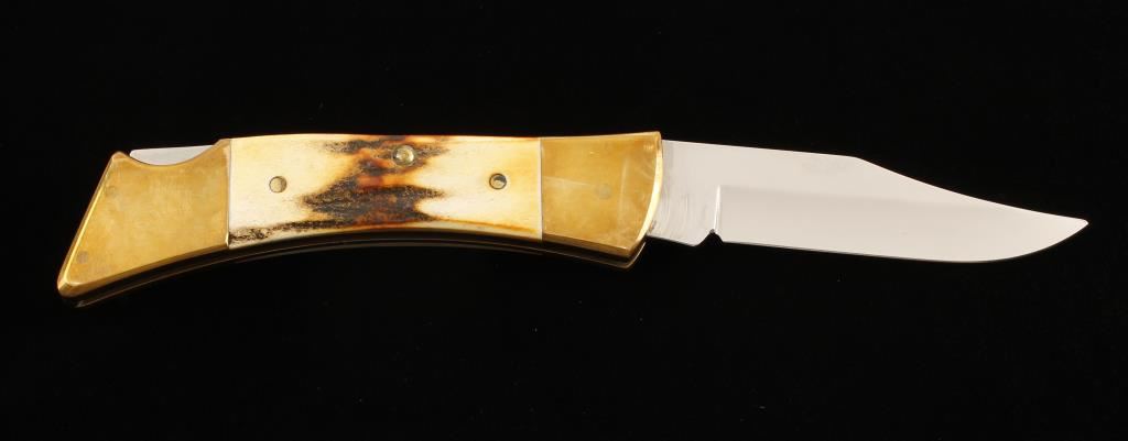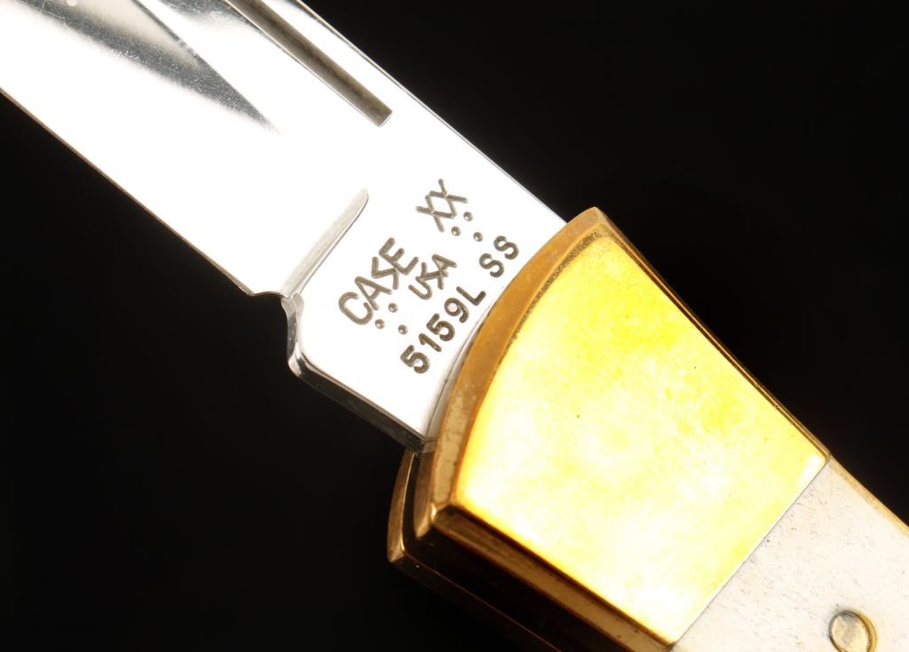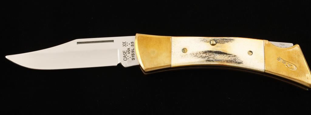 Made in 1984. Stamped "5159L SS". Handles are stag. Locking blade is 3-9/16" long. Bolsters and frame are brass with "Case" cast into a rear bolster. Condition is excellent.