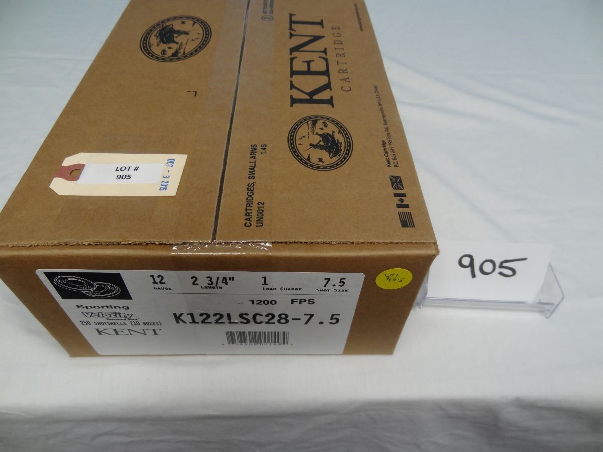 Lot 905 Kent Cartridge- Sporting Target 12 GA 2 3/4" 1" LC Shot size 7.5, KIZZ LSC 28-7.5, Diamond Shot Lead