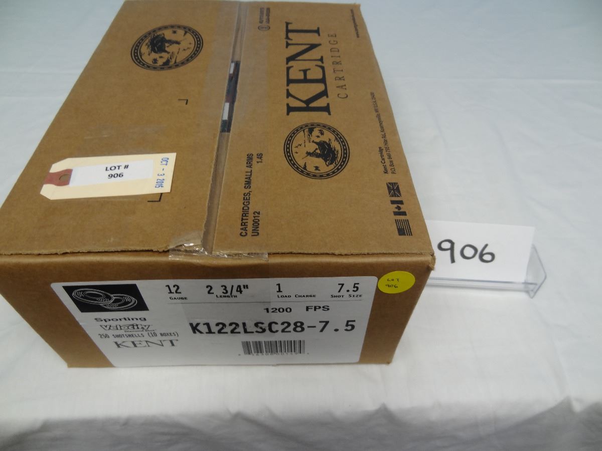 Lot 906 Kent Cartridge- Sporting Target 12 GA 2 3/4" 1" LC Shot size 7.5, KIZZ LSC 28-7.5, Diamond Shot Lead