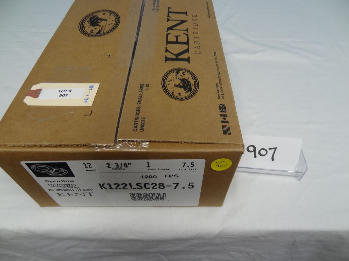 Lot 907 Kent Cartridge- Sporting Target 12 GA 2 3/4" 1" LC Shot size 7.5, KIZZ LSC 28-7.5, Diamond Shot Lead