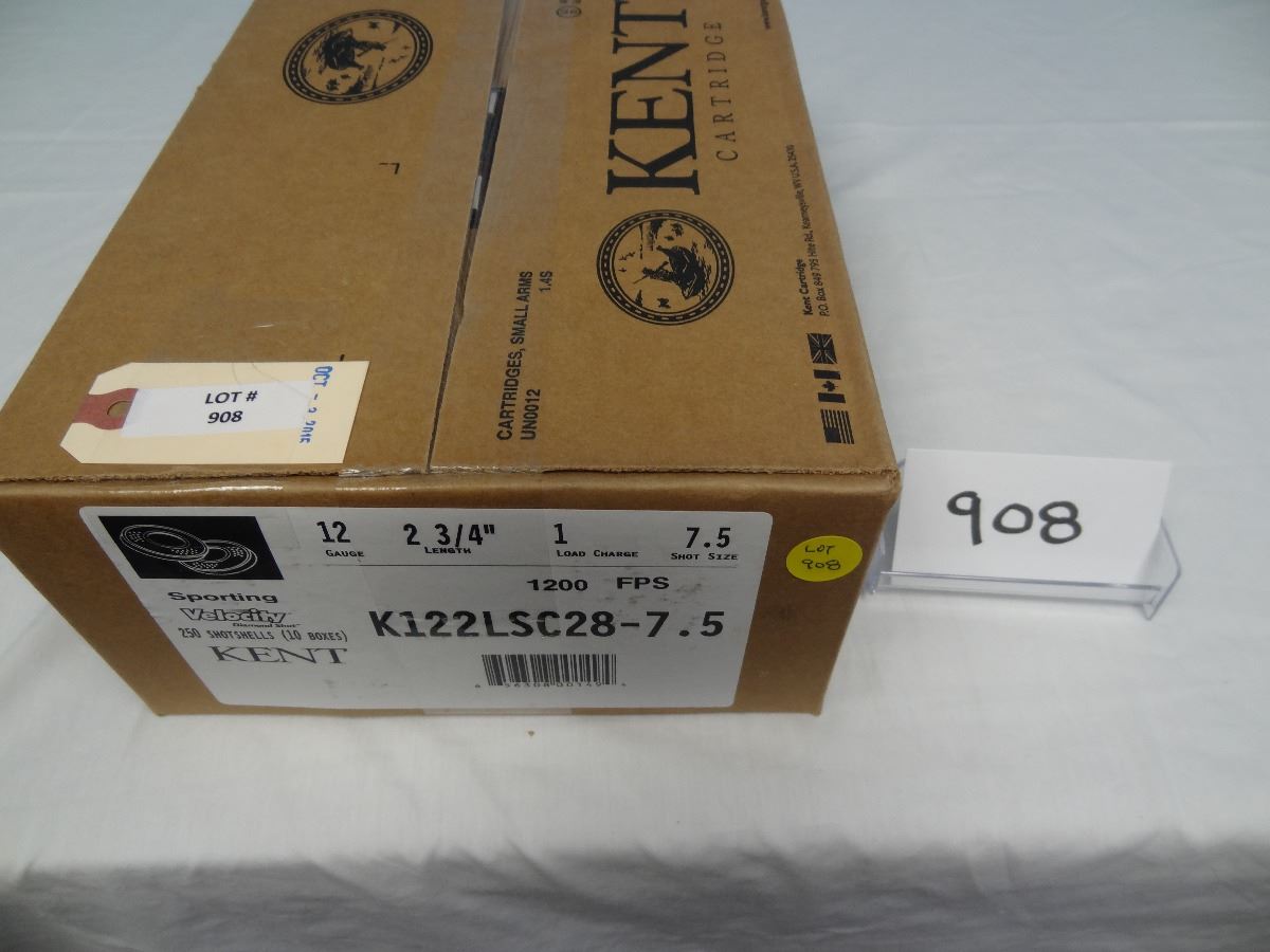 Lot 908 Kent Cartridge- Sporting Target 12 GA 2 3/4" 1" LC Shot size 7.5, KIZZ LSC 28-7.5, Diamond Shot Lead