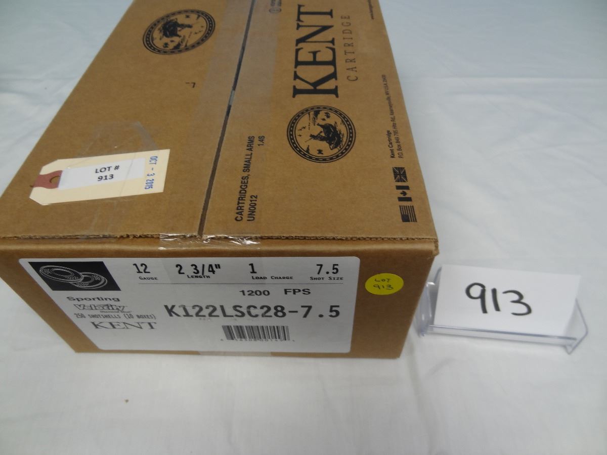 Lot 913 Kent Cartridge- Sporting Target 12 GA 2 3/4" 1" LC Shot size 7.5, KIZZ LSC 28-7.5, Diamond Shot Lead