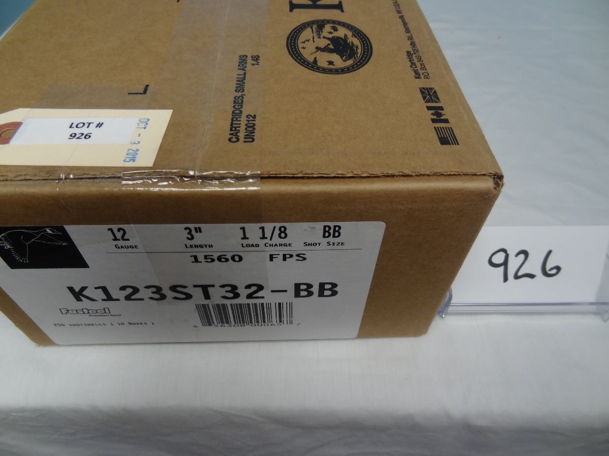 Lot 926 Kent Cartridge- Fasteel 12 GA 3 "L 1 1/8" LC Shot size BB, K123ST32-BB, Precision Steel, Case 10x25