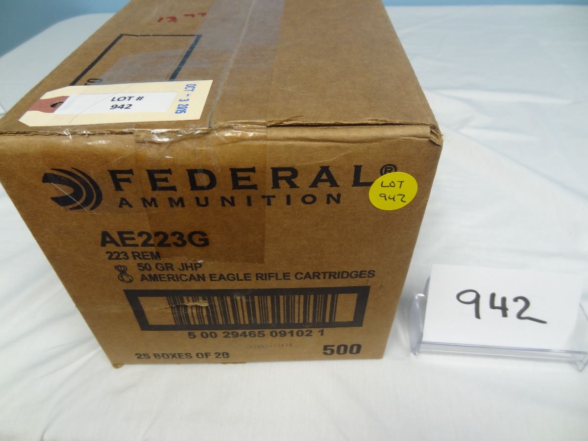 Lot 942 Federal Ammunition, AE223G, 223 REM, 50 g, JHP, Case American Eagle Rifle Cartridges, 25 boxes of 20