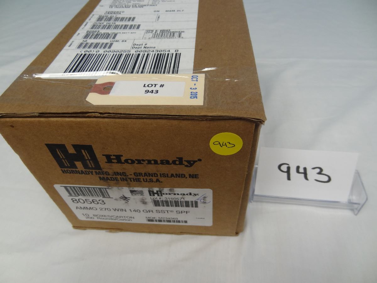Lot 943 Hornady Mfg Inc, #80563, Ammo. 270 Win, 140 g, SST-SPF, Case 10 boxes x 20= 200 rounds