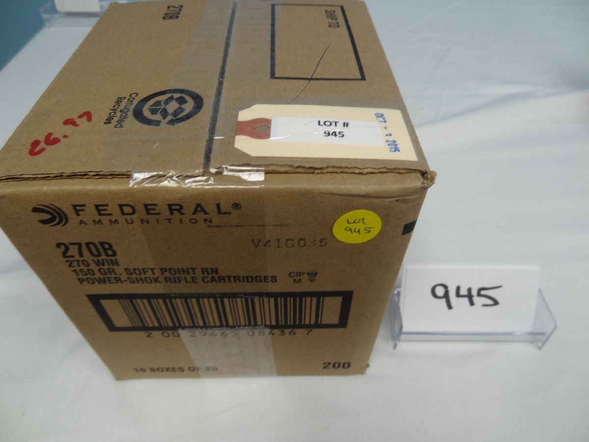 Lot 945 Federal Ammunition, 270B, 270 Win, 150g, soft point, RN, Power-Shok Rifle Cartridges, case 10 boxes